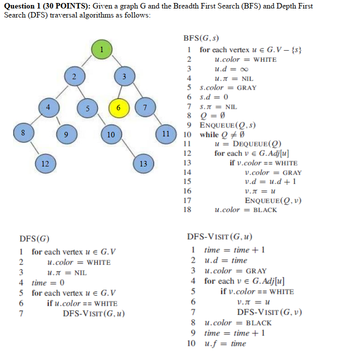 Solved Question 1 30 Points Given A Graph G And The Chegg Com